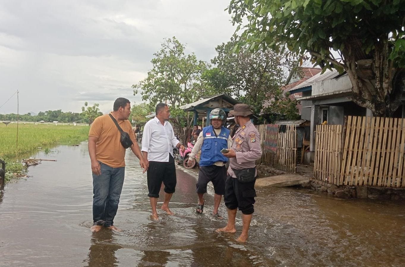 Personel Polsek Polres Bima dikerahkan untuk membantu Warga di tiga desa wilayah Kecamatan Bolo yang terdampak banjir.